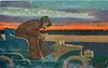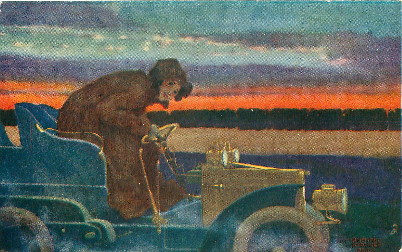 dark scene, lady driving right