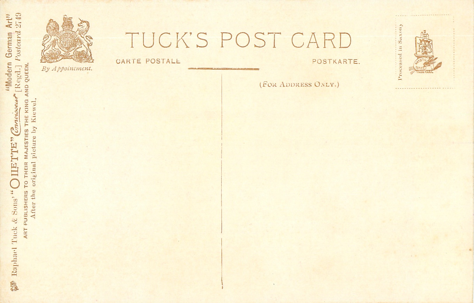OILETTE CONNOISSEUR, PROCESSED IN SAXONY (in stamp box), listed in 1908/1909 & 1911/1912 Postcard Catalogue
