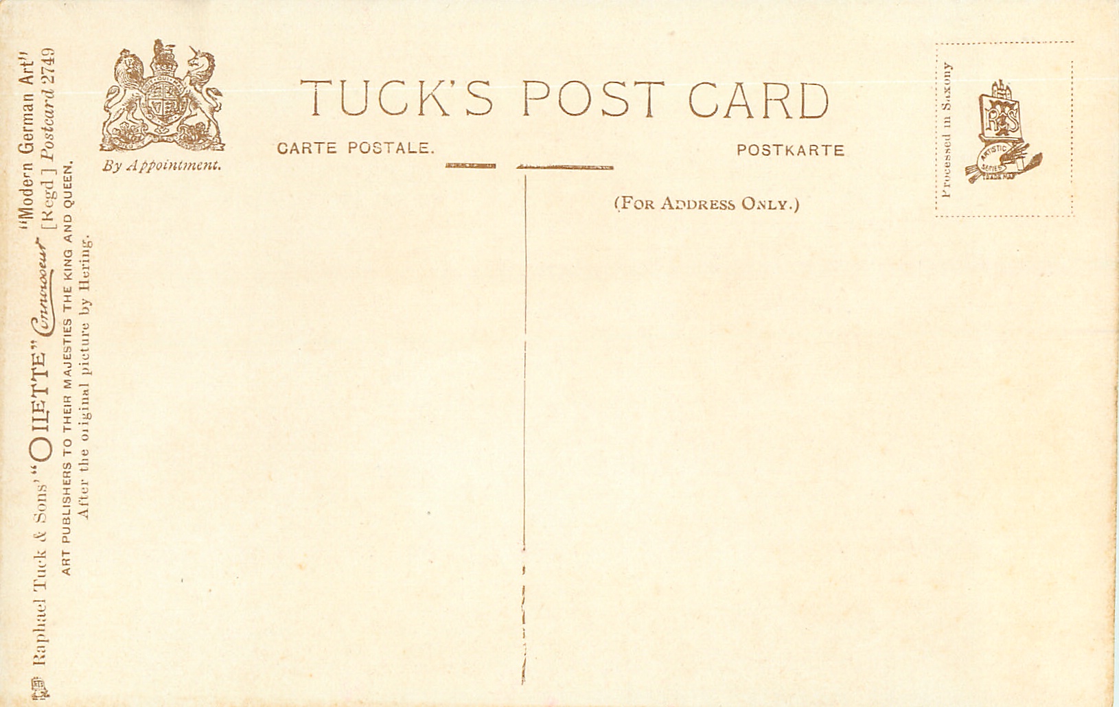 OILETTE CONNOISSEUR, PROCESSED IN SAXONY (in stamp box), listed in 1908/1909 & 1911/1912 Postcard Catalogue