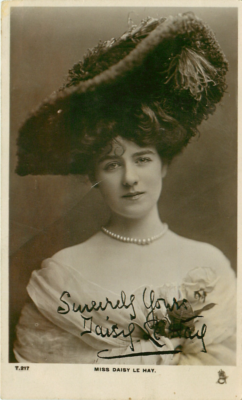MISS DAISY LE HAY head & shoulders, large hat, faces & looks front
