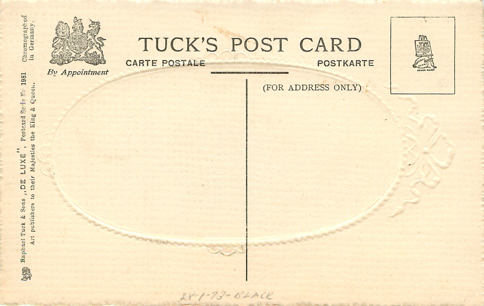 embossed, CHROMOGRAPHED IN GERMANY, all come opt. in red A HAPPY NEW YEAR at base, listed in RAPHAEL TUCK & SONS' LD. CHRISTMAS & NEW YEAR 1904/1905 catalogue
