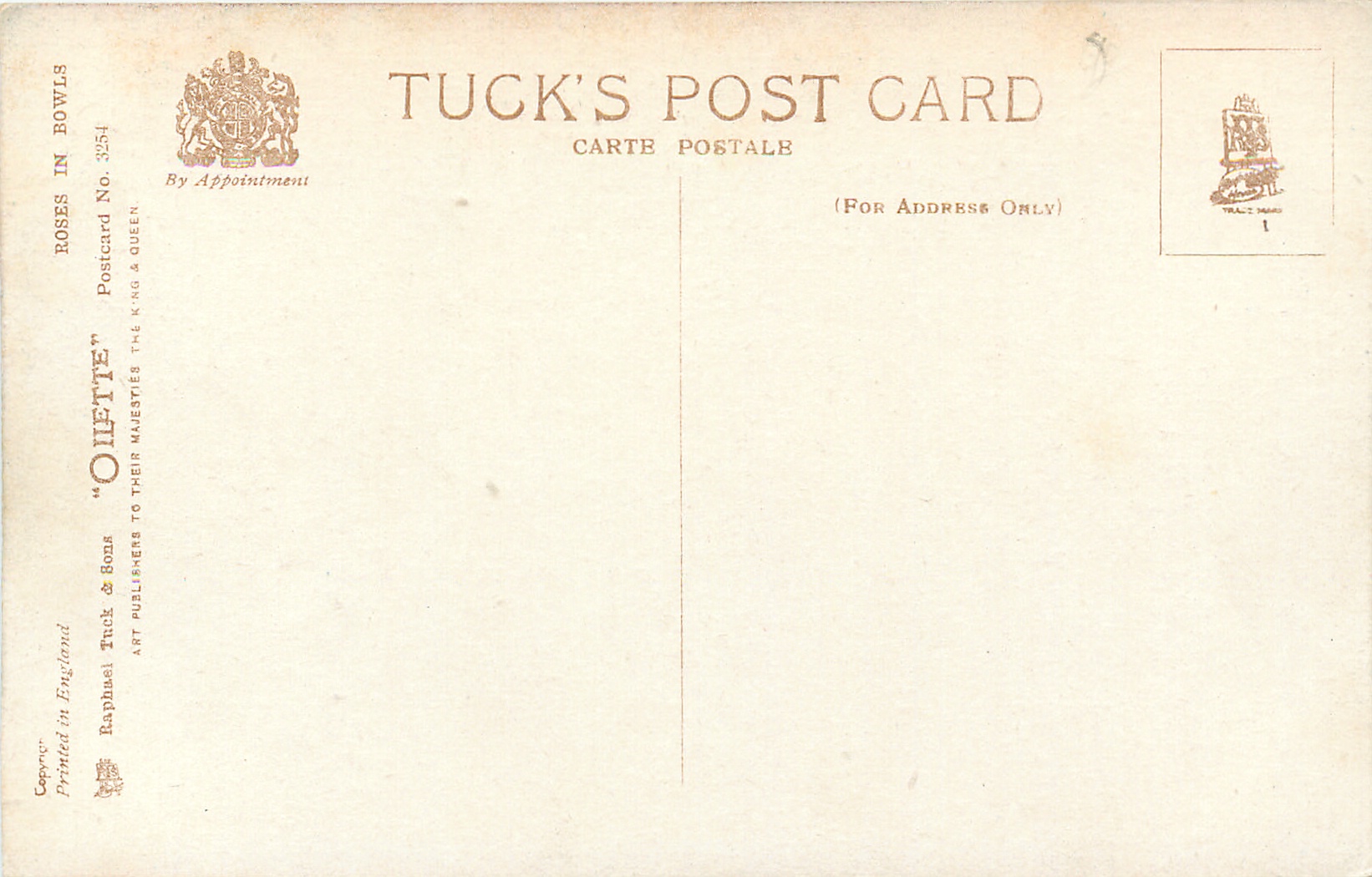 OILETTE, PRINTED IN ENGLAND, COPYRIGHT LONDON, come O/F not so trade named, come OILFACSIM with O/F prefixes, same images with birthday opts.1869, listed in 1930 Postcard Catalogue