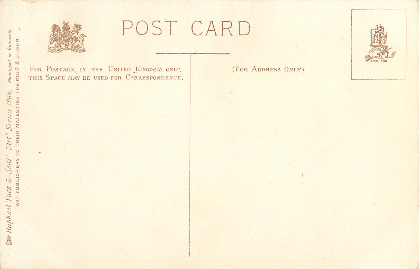 grey, ART, PHOTOTYPED IN GERMANY, monochrome, listed in 1904 POSTCARD Catalogue