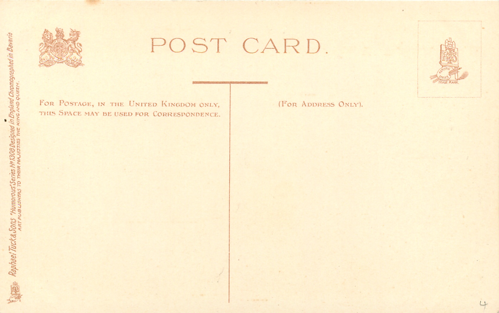HUMOROUS, DESIGNED IN ENGLAND, CHROMOGRAPHED IN BAVARIA, listed in 1904 POSTCARD Catalogue