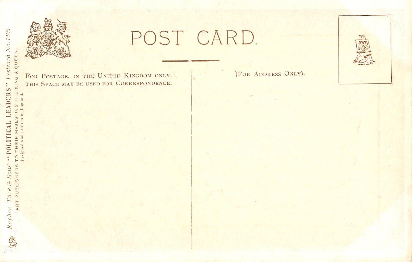 DESIGNED AND PRINTED IN ENGLAND, come opt. in red CHAMBERLAIN FLOUR ads. front & back, listed in 1904 & 1908/1909 & 1911/1912 Postcard Catalogues