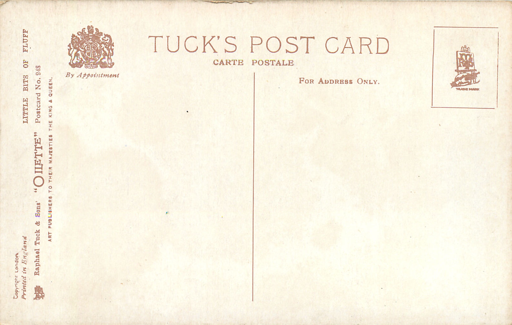 OILETTE, PRINTED IN ENGLAND, COPYRIGHT LONDON, 2 backs, come with blue or grey inscriptions