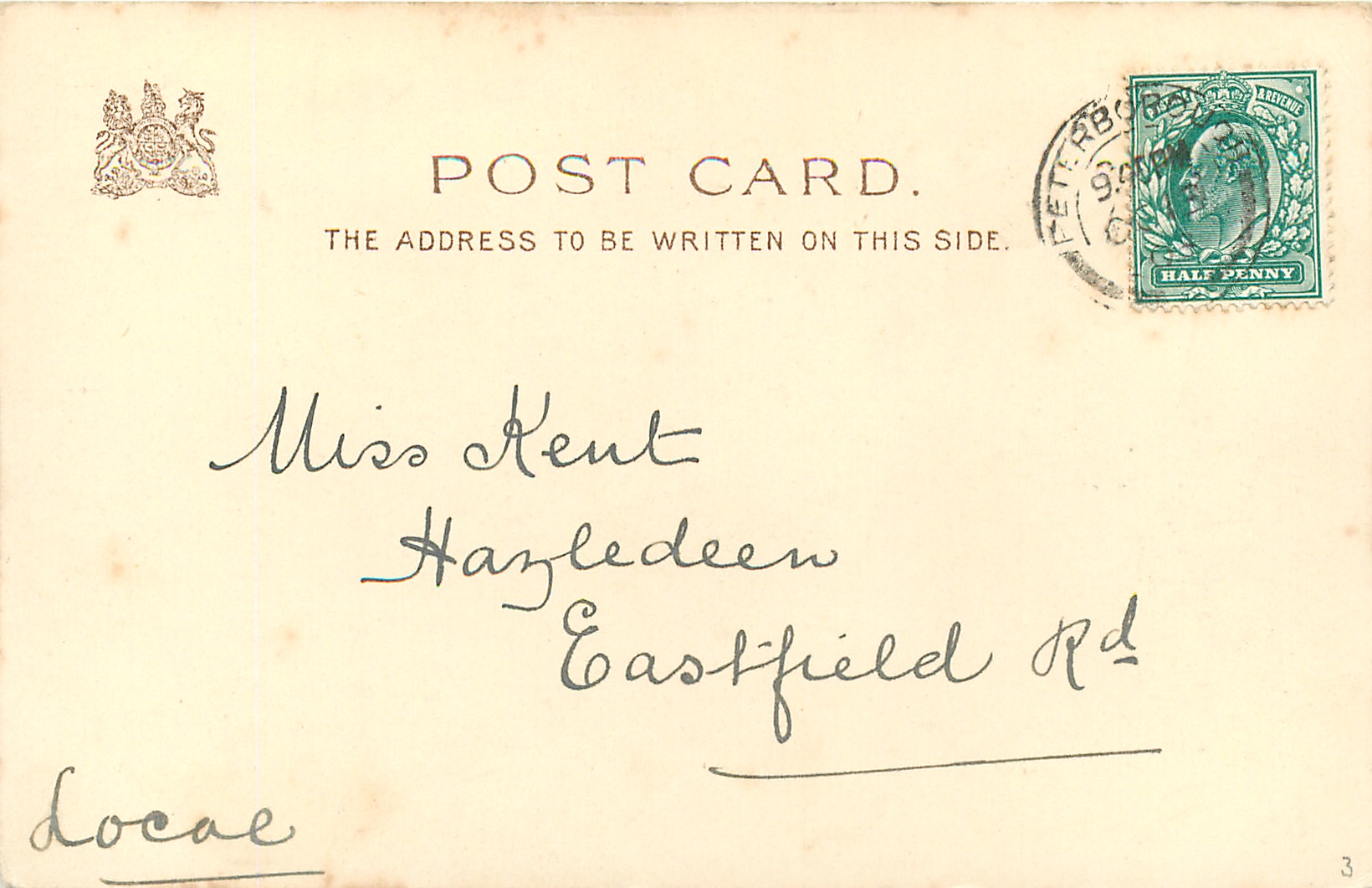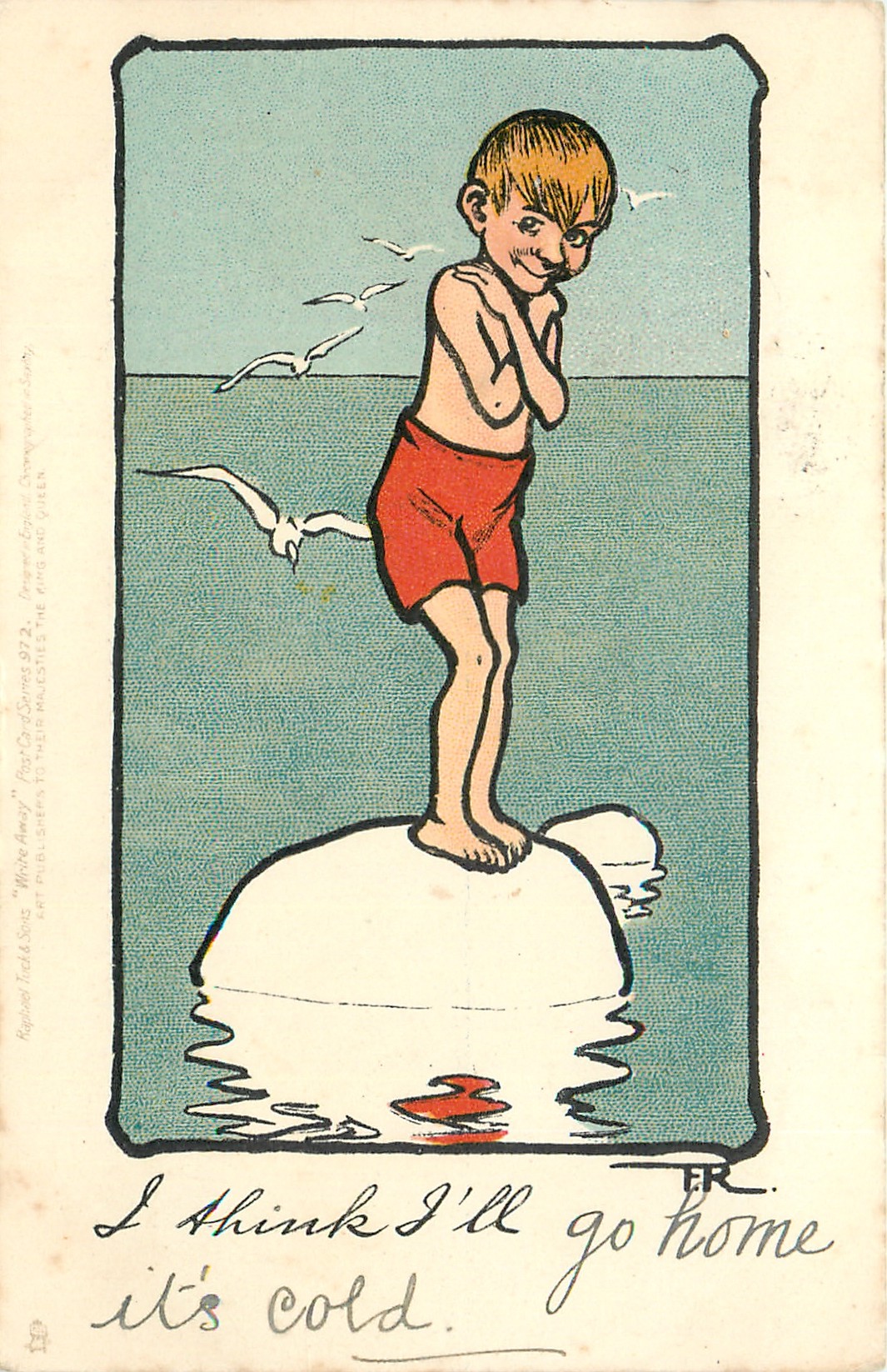WRITE AWAY, u/b, DESIGNED IN ENGLAND, CHROMOGRAPHED IN SAXONY, d/b CHROMOGRAPHED IN SAXONY, listed as Write Away Designs in 1904 & 1908/1909 & 1911/1912 & 1913/1914 Postcard Catalogues