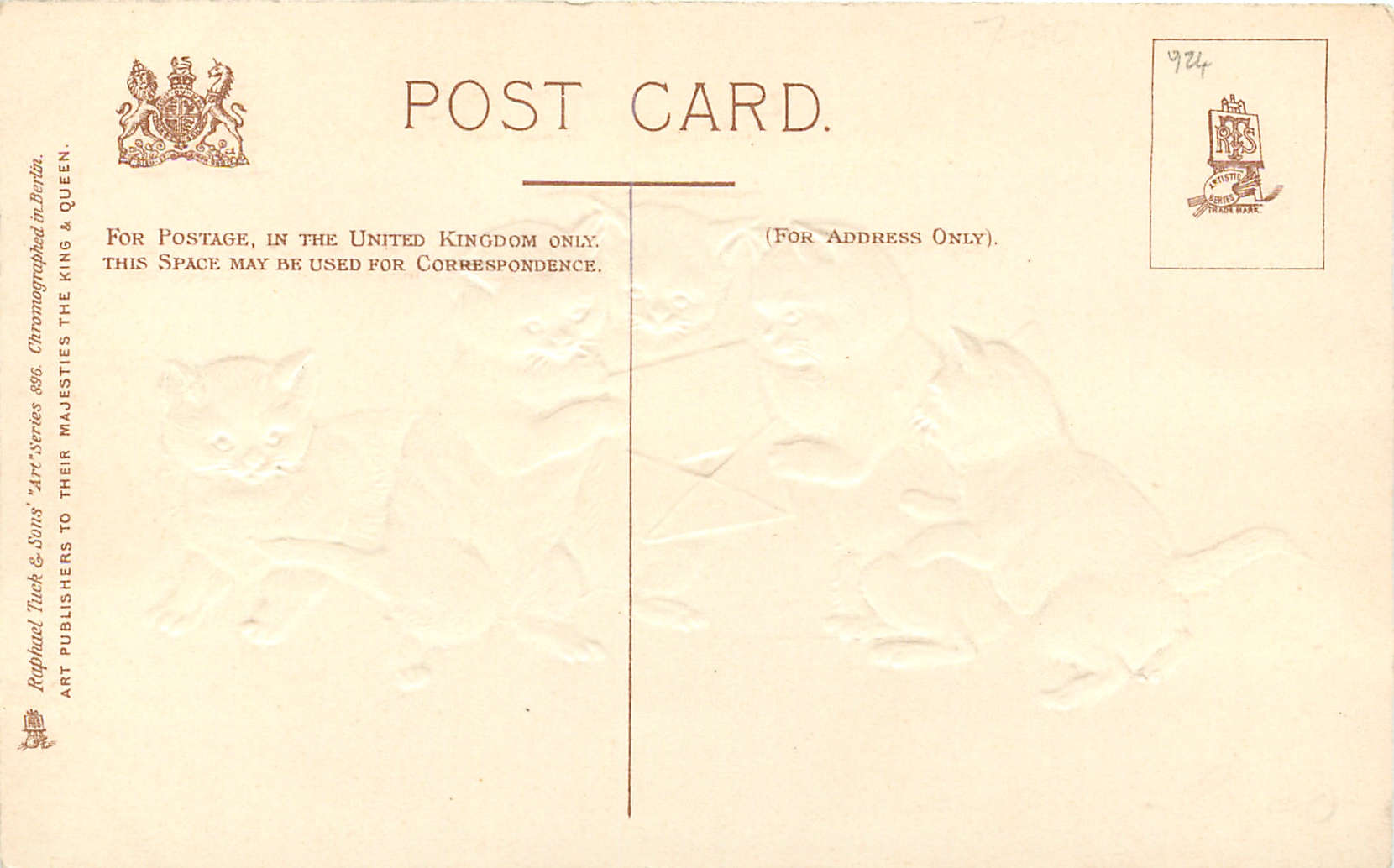 ART, embossed, u/b CHROMOGRAPHED IN PRUSSIA, or d/b CHROMOGRAPHED IN BERLIN, listed in 1904 POSTCARD Catalogue