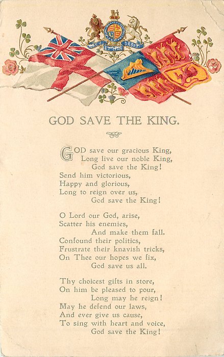 crest & flags GOD SAVE THE KING three verses of National Anthem