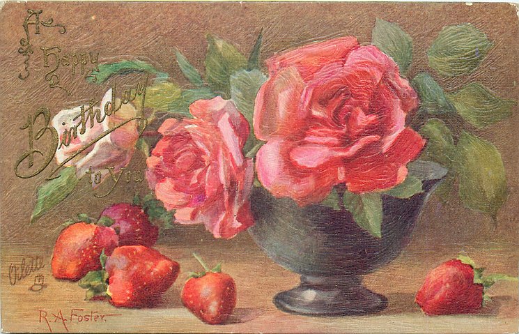 OILETTE, PRINTED IN ENGLAND, COPYRIGHT LONDON, AFTER THE ORIGINAL PAINTING BY R.A. FOSTER., come with various greetings in various colours & verses, listed in 1926/1927 & 1930 POSTCARD Catalogues