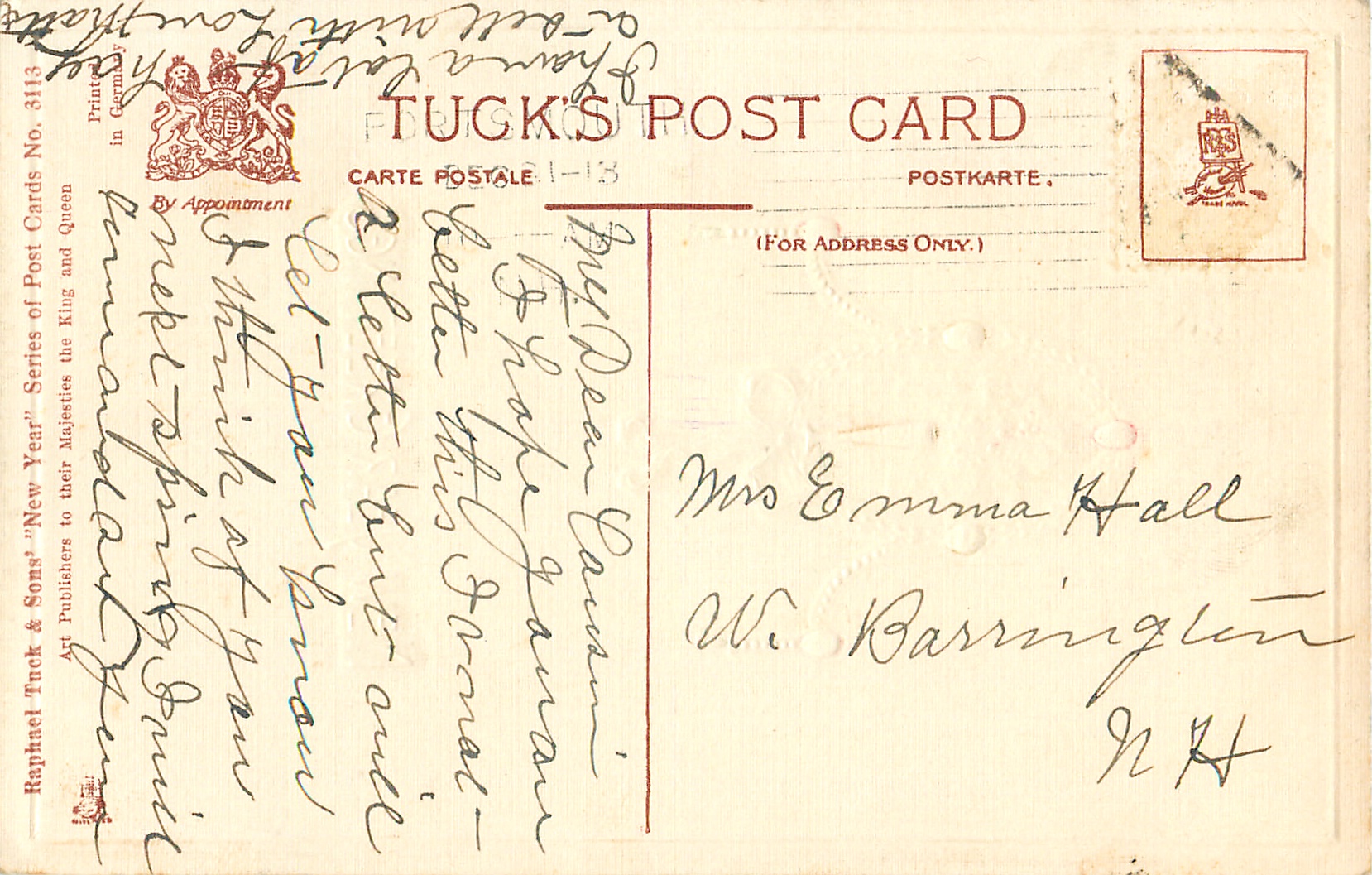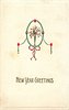NEW YEAR GREETINGS flowers in gilt vase in centre of fancy design