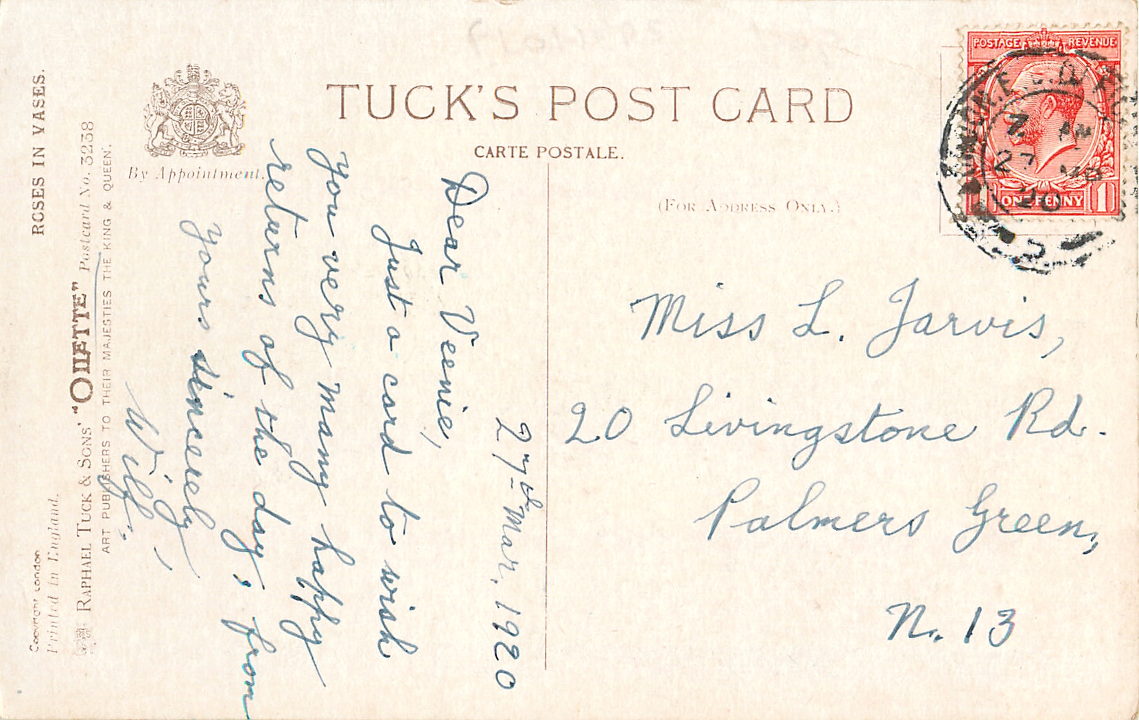 OILETTE, PRINTED IN ENGLAND, COPYRIGHT LONDON, listed in 1930 Postcard Catalogue