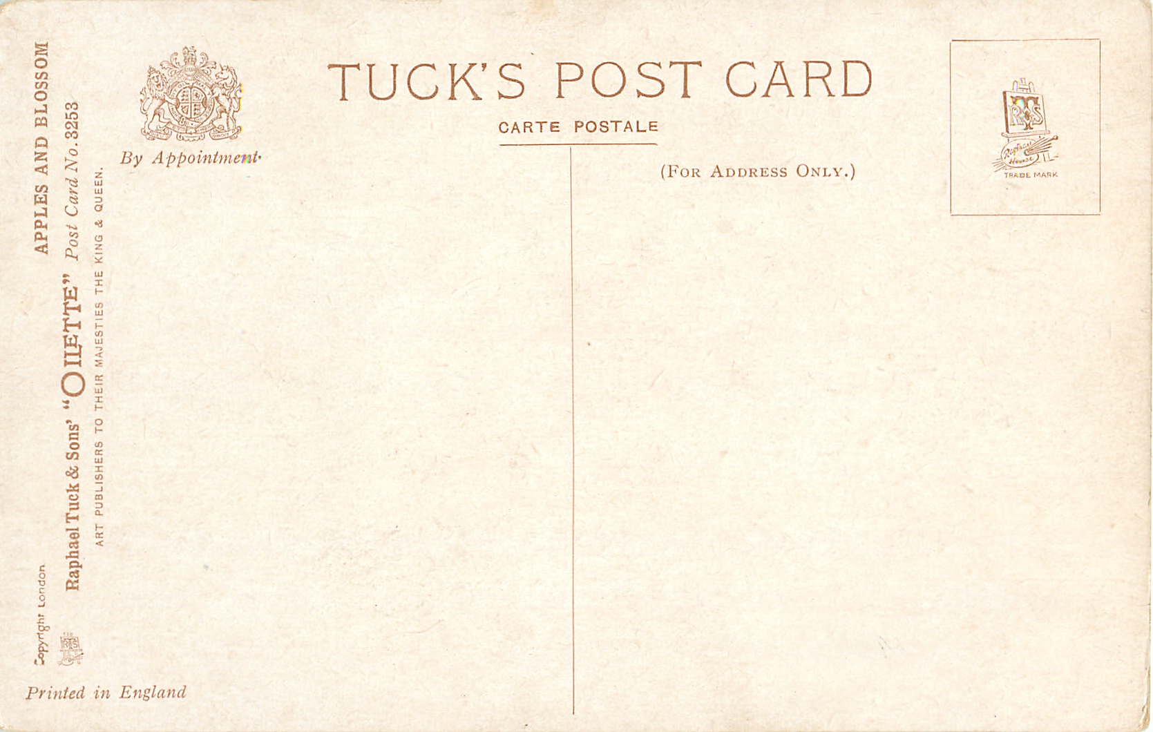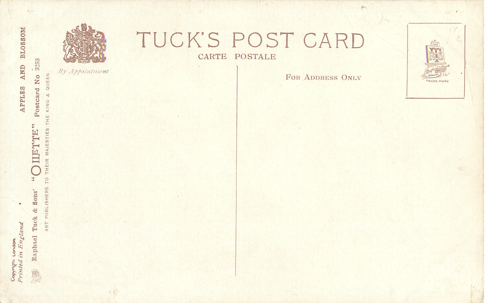 OILETTE, PRINTED IN ENGLAND, COPYRIGHT LONDON, 2 backs, listed in 1926/1927 & 1930 Postcard Catalogues