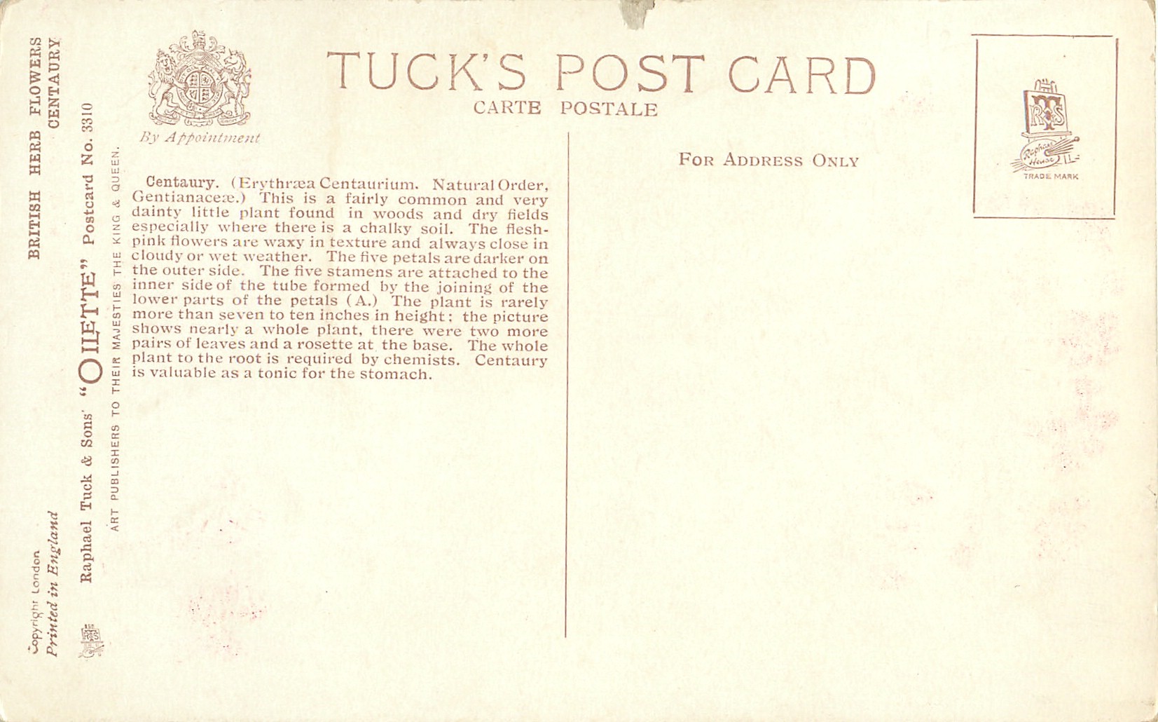 OILETTE, PRINTED IN ENGLAND, COPYRIGHT LONDON, listed in 1926/1927 & 1930 Postcard Catalogues