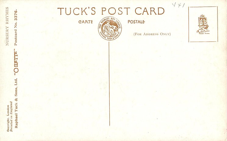 OILETTE, PRINTED IN ENGLAND, COPYRIGHT LONDON, 3 backs, listed in 1930 POSTCARD Catalogue &1932 ART SERVICE Catalogue