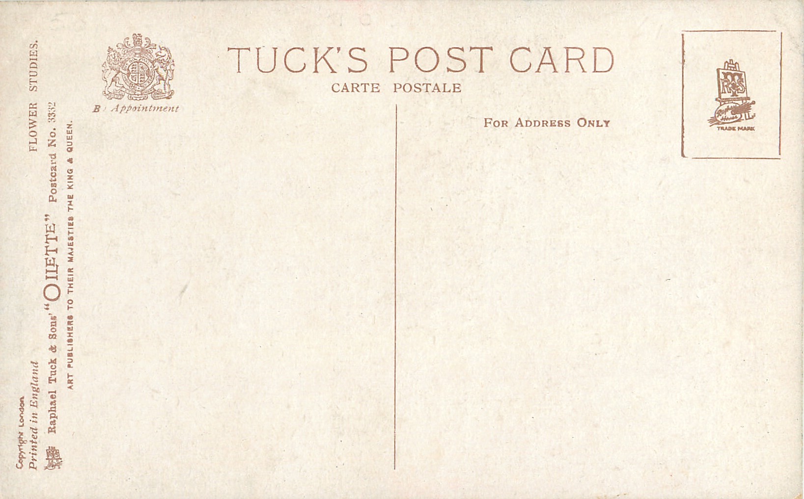 OILETTE, PRINTED IN ENGLAND, COPYRIGHT LONDON, listed in 1926/1927 POSTCARD Catalogue