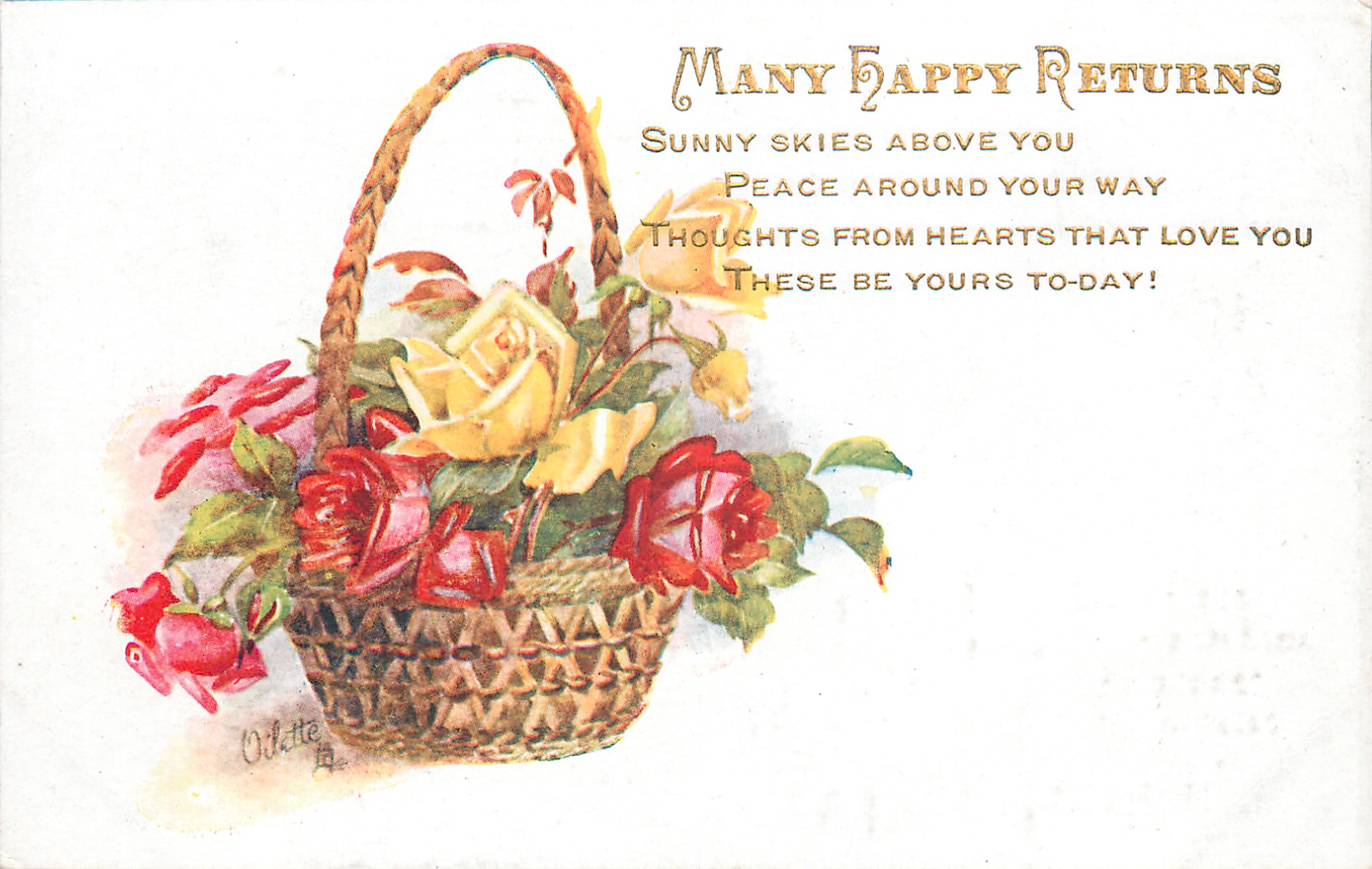 OILETTE, PRINTED IN ENGLAND, COPYRIGHT LONDON, comes with various greetings & verses