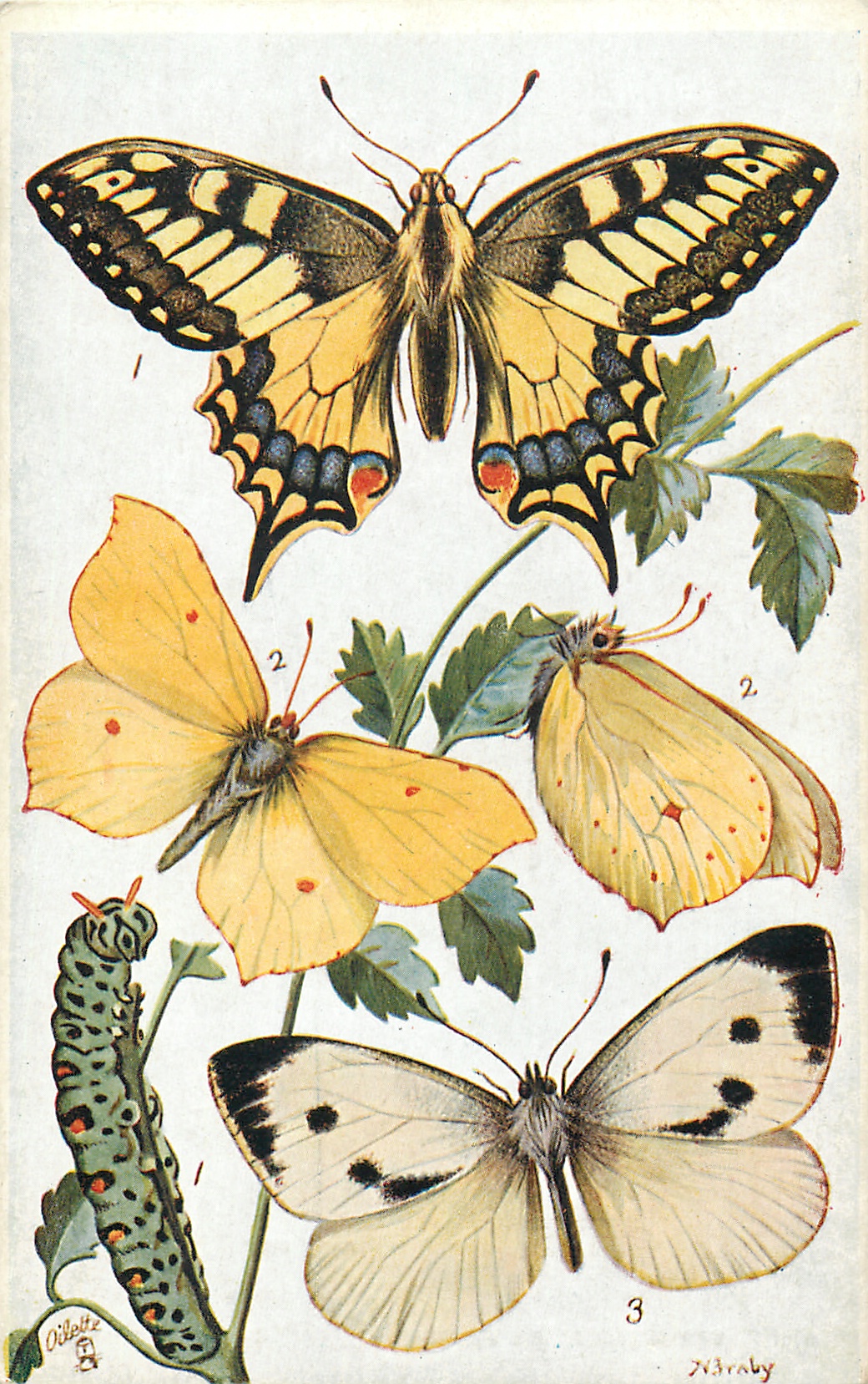 SWALLOW-TAIL AND CATERPILLAR, BRIMSTONE, LARGE GARDEN WHITE