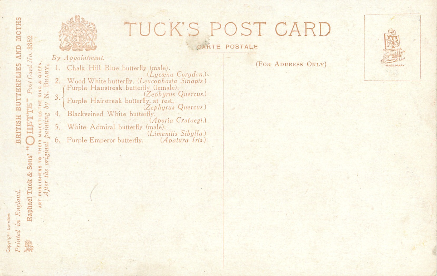 CHALK HILL BLUE, WOOD WHITE, PURPLE HAIRSTREAK, BLACKVEINED, WHITE ADMIRAL, PURPLE EMPEROR