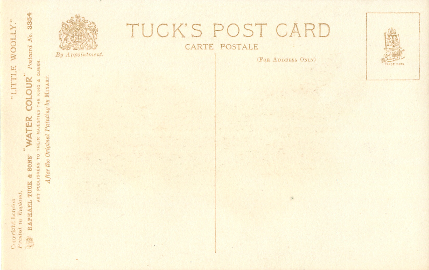 WATER COLOUR, PRINTED IN ENGLAND, COPYRIGHT LONDON, AFTER THE ORIGINAL PAINTING BY MINART., series no. often appears to be 3854. listed in 1926/1927 & 1930 POSTCARD Catalogues