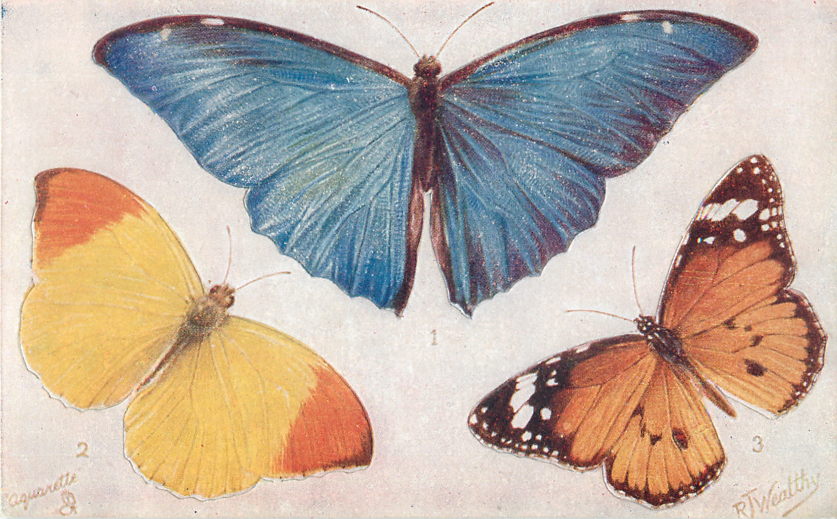 FOREIGN BUTTERFLIES, MORPHO ADONIS, ERONIA IEDA, DANAUS CHRYSIPPUS