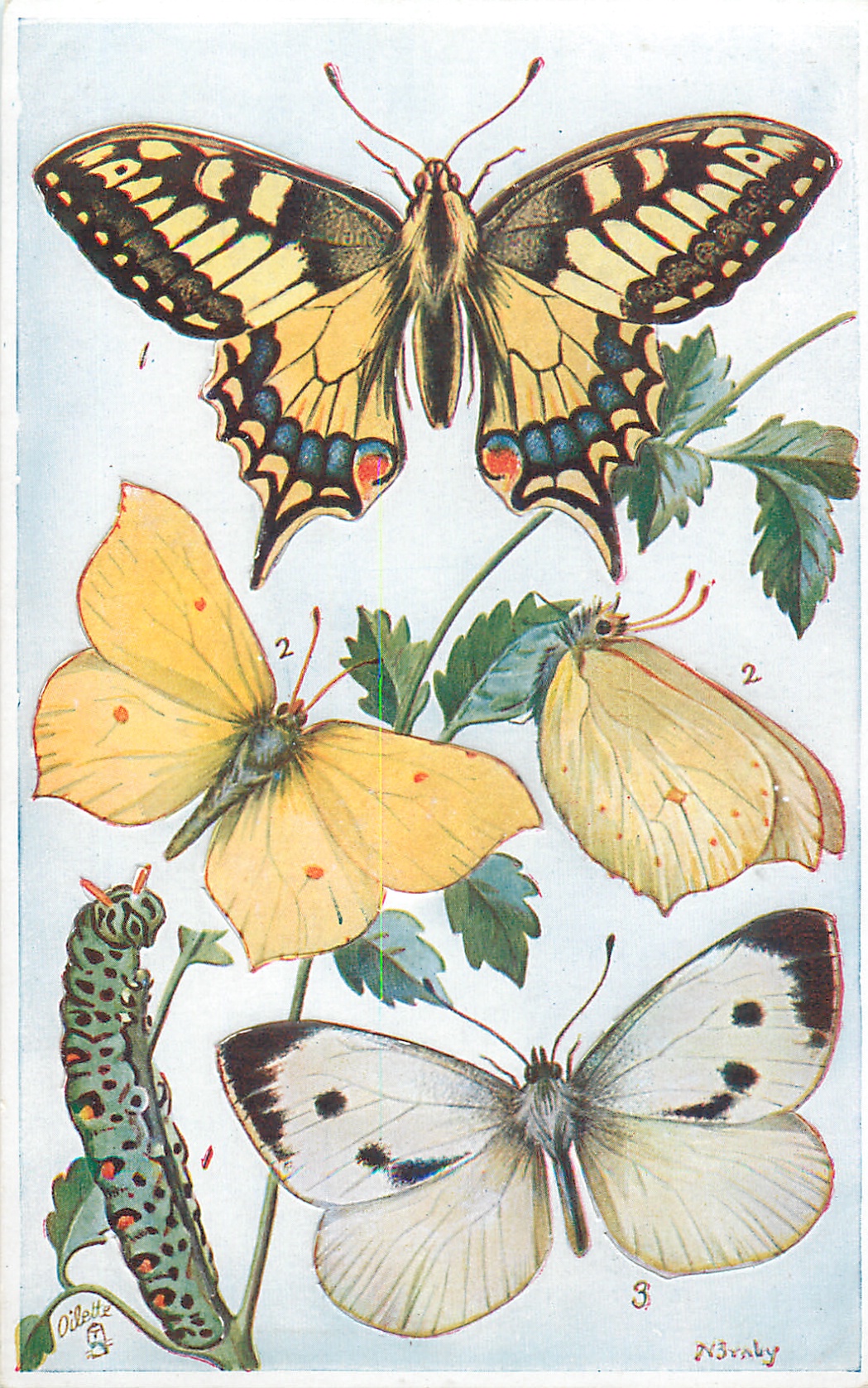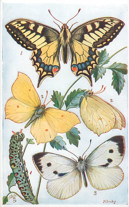 SWALLOW-TAIL BUTTERFLY AND CATTERPILLAR (PAPILIO MACHAON)//LARGE GARDEN WHITE BUTTERFLY (FEMALE)