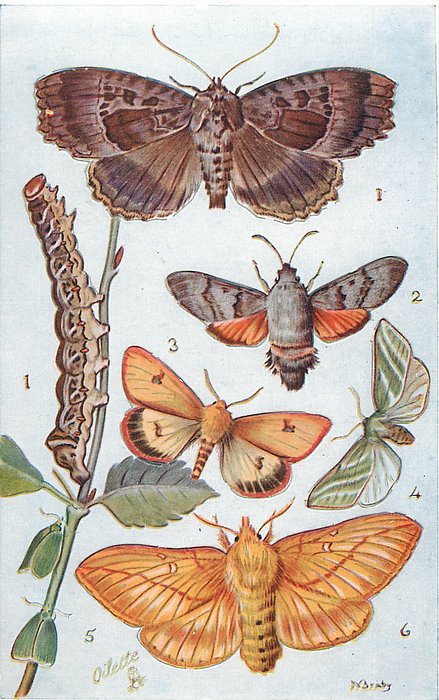 OLD LADY MOTH AND CATERPILLAR//DRINKER MOTH