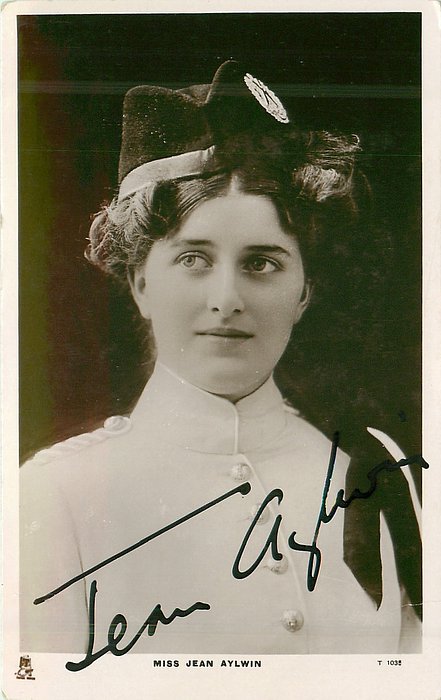 shown card has real autograph, PHOTO DOVER STREET STUDIOS Jean Aywlin 1885 Scotland- 1964) An Actress and singer in shows, on tours, and then in London to join the Gaiety Girl's and their plays;. .