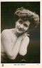 MISS GABY DESLYS head & chest, very off shoulder dress, both hands at left cheek