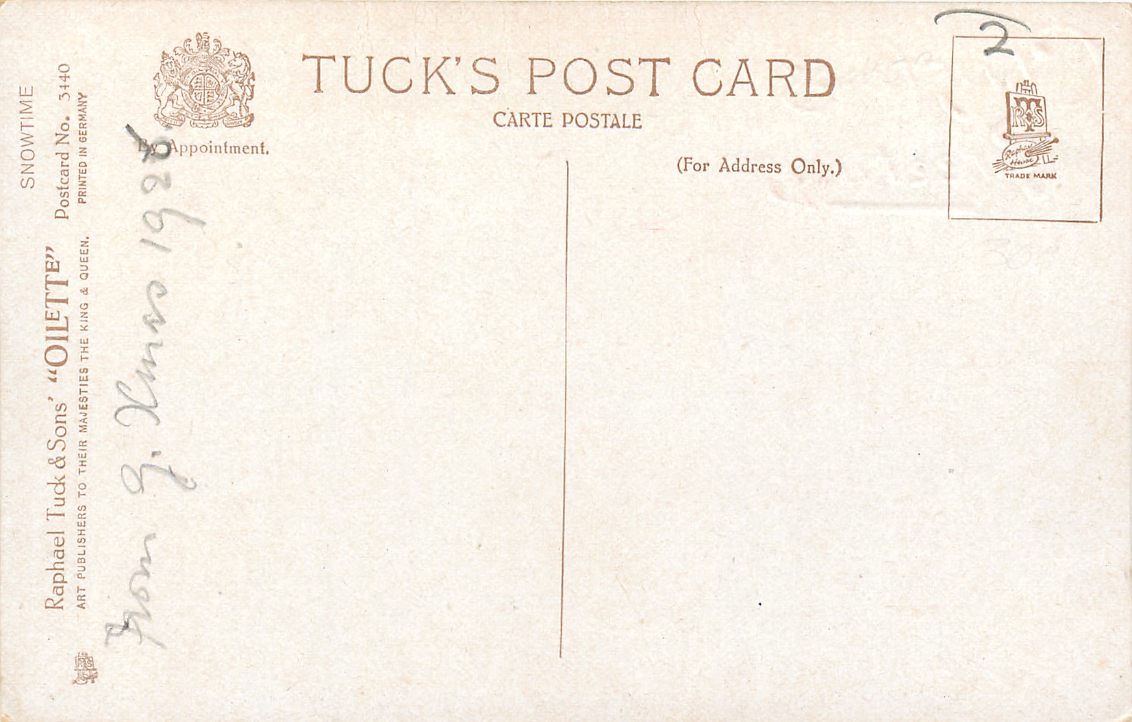 OILETTE, PRINTED IN GERMANY, listed in 1926/1927 & 1930 POSTCARD Catalogues as Winter Scenes
