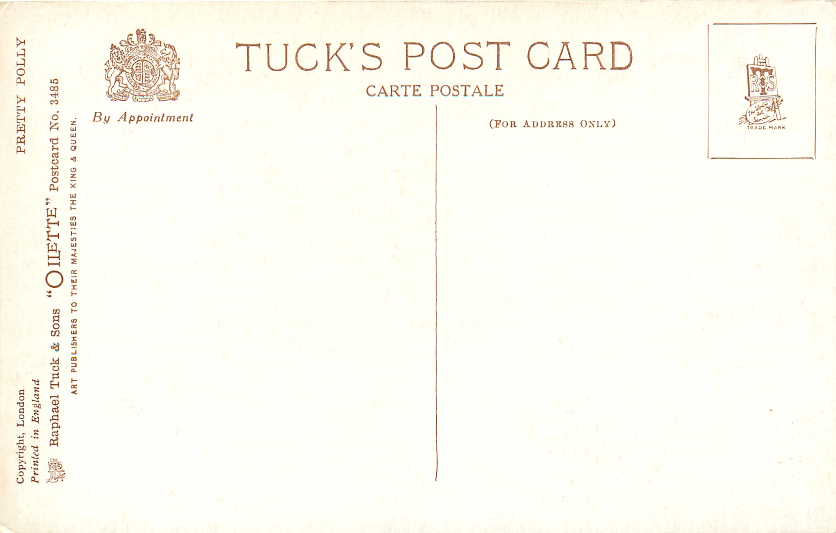 OILETTE, PRINTED IN ENGLAND, COPYRIGHT LONDON, listed in 1930 Postcard Catalogue