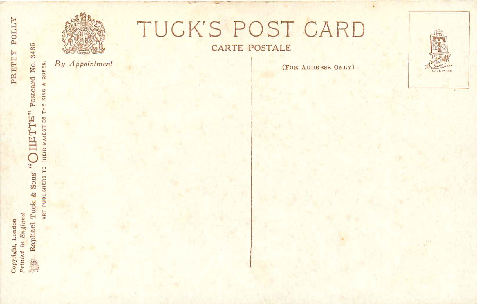 OILETTE, PRINTED IN ENGLAND, COPYRIGHT LONDON, listed in 1930 Postcard Catalogue