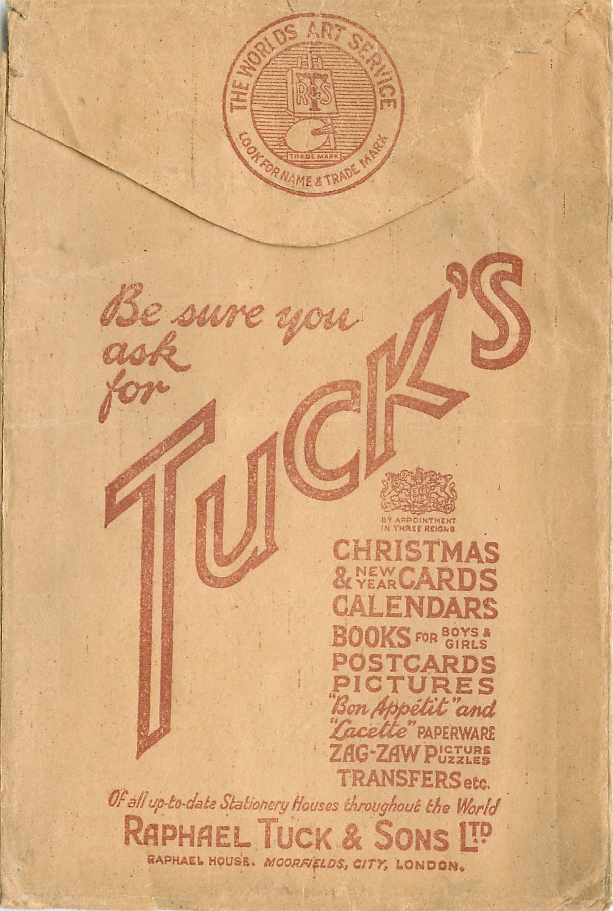 OILETTE, PRINTED IN ENGLAND, COPYRIGHT LONDON, come with card titles in French, U.K. backs, come with Tuck ads for BRITISH EMPIRE EXHIBITION, listed in 1930 POSTCARD Catalogue