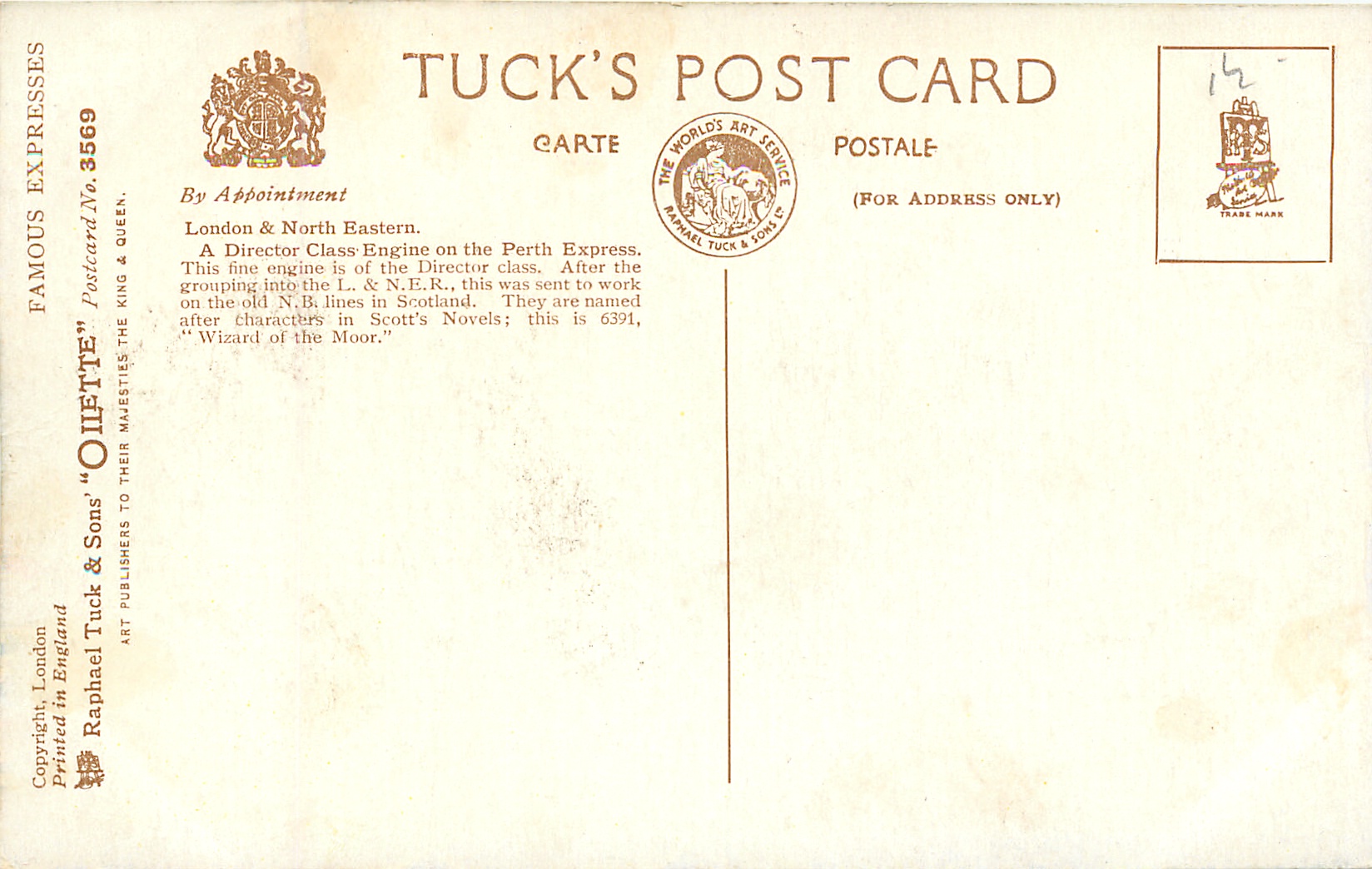 OILETTE, PRINTED IN ENGLAND, 2 backs, listed in 1930 Postcard Catalogue