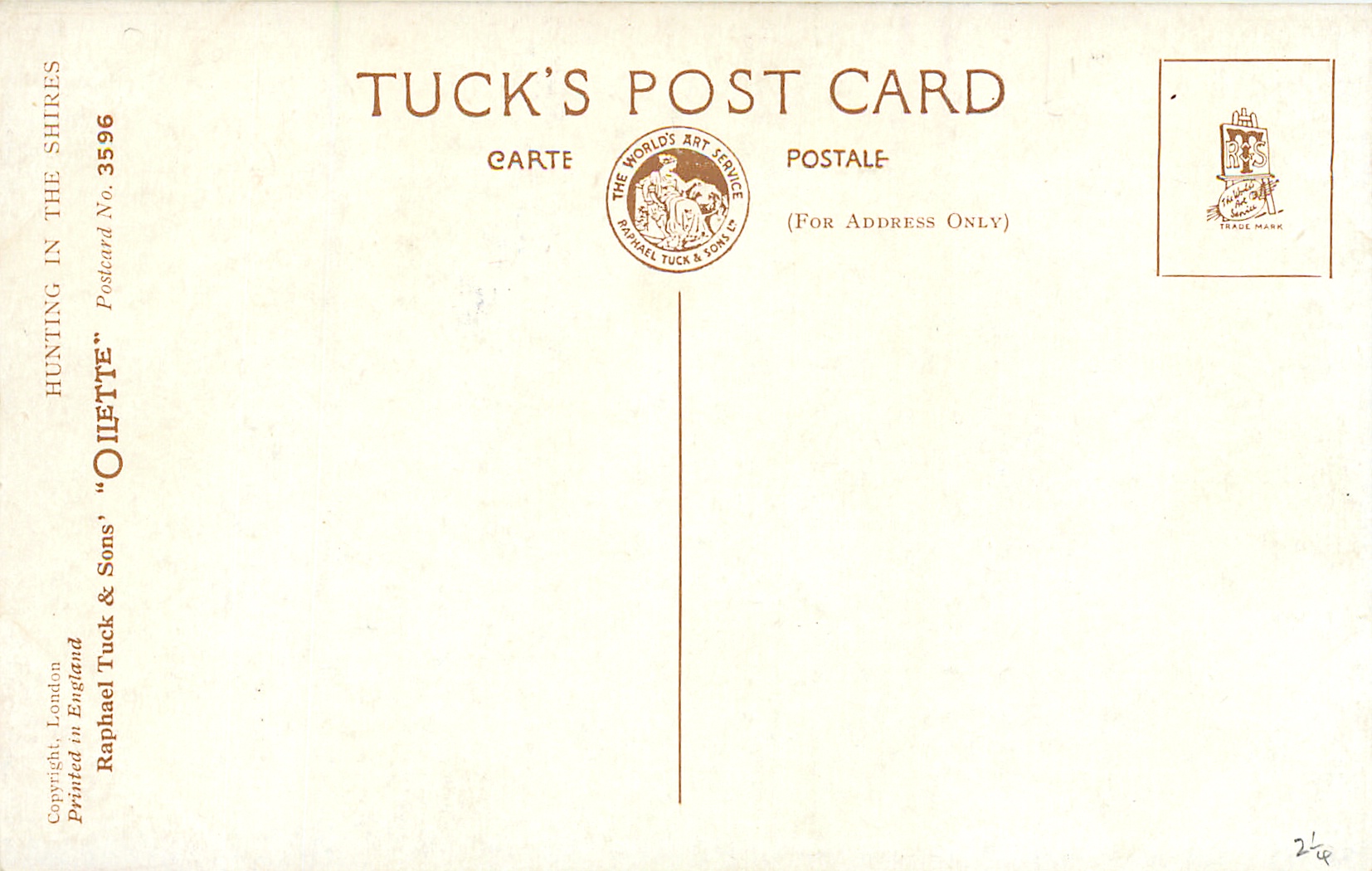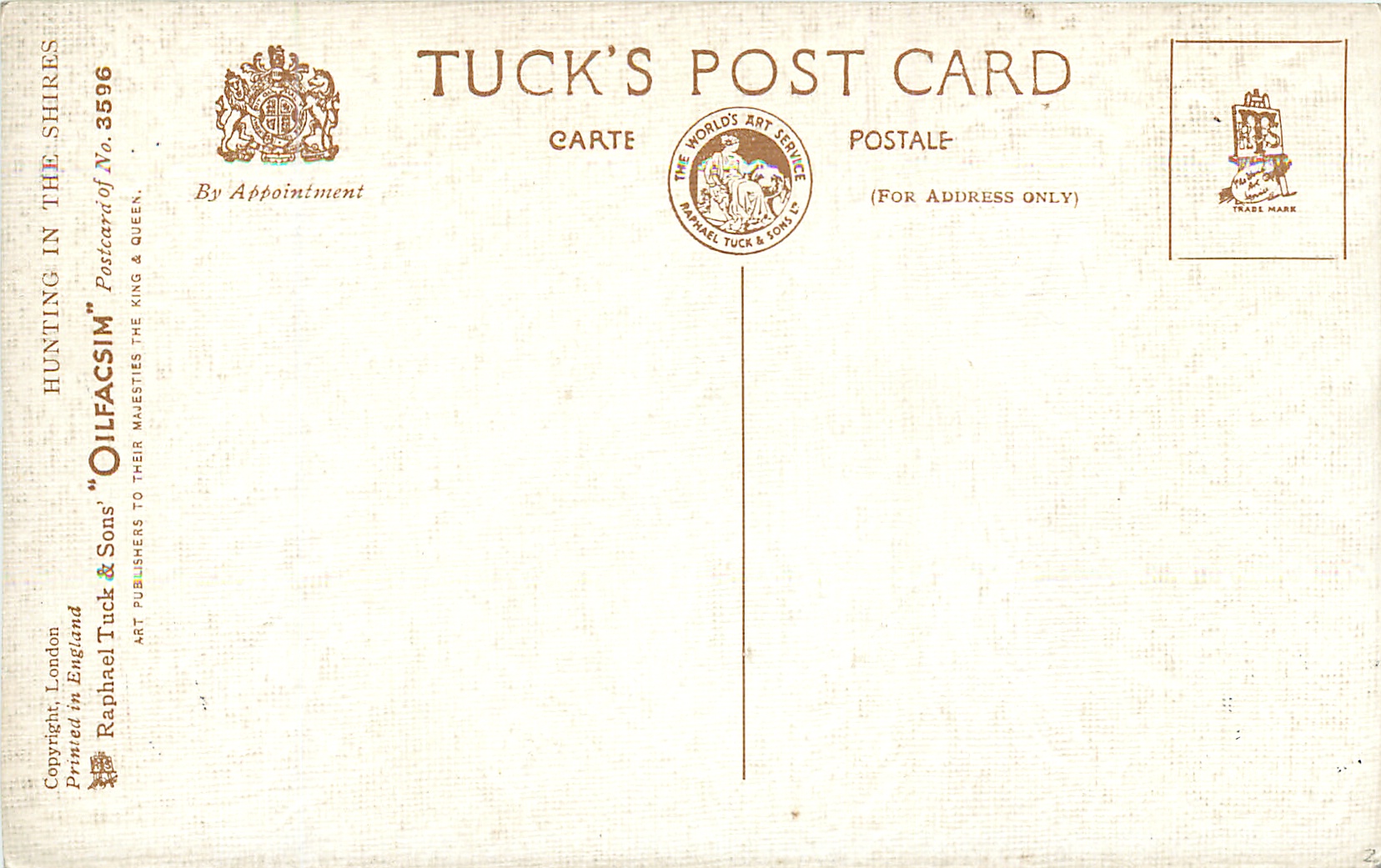 OILETTE, PRINTED IN ENGLAND, COPYRIGHT LONDON, comes OILETTE DE LUXE, comes OILFACSIM w/o prefix, 4 backs, , listed in 1930 Postcard Catalogue & 1932 ART SERVICE Catalogue