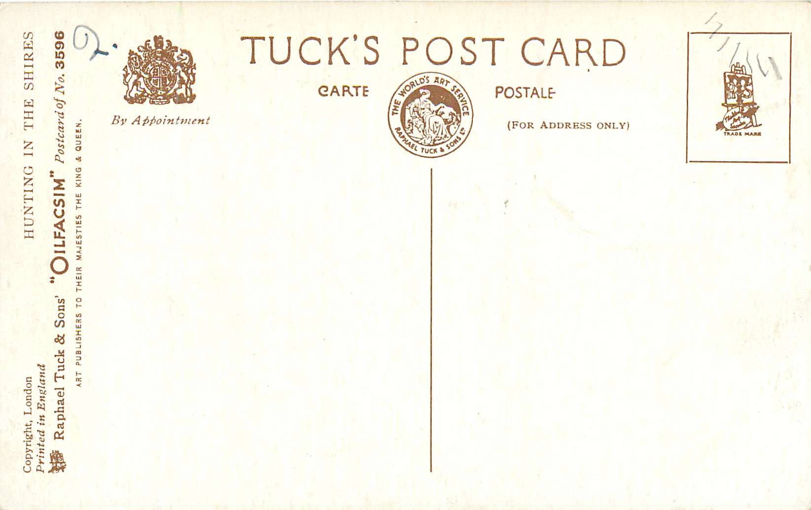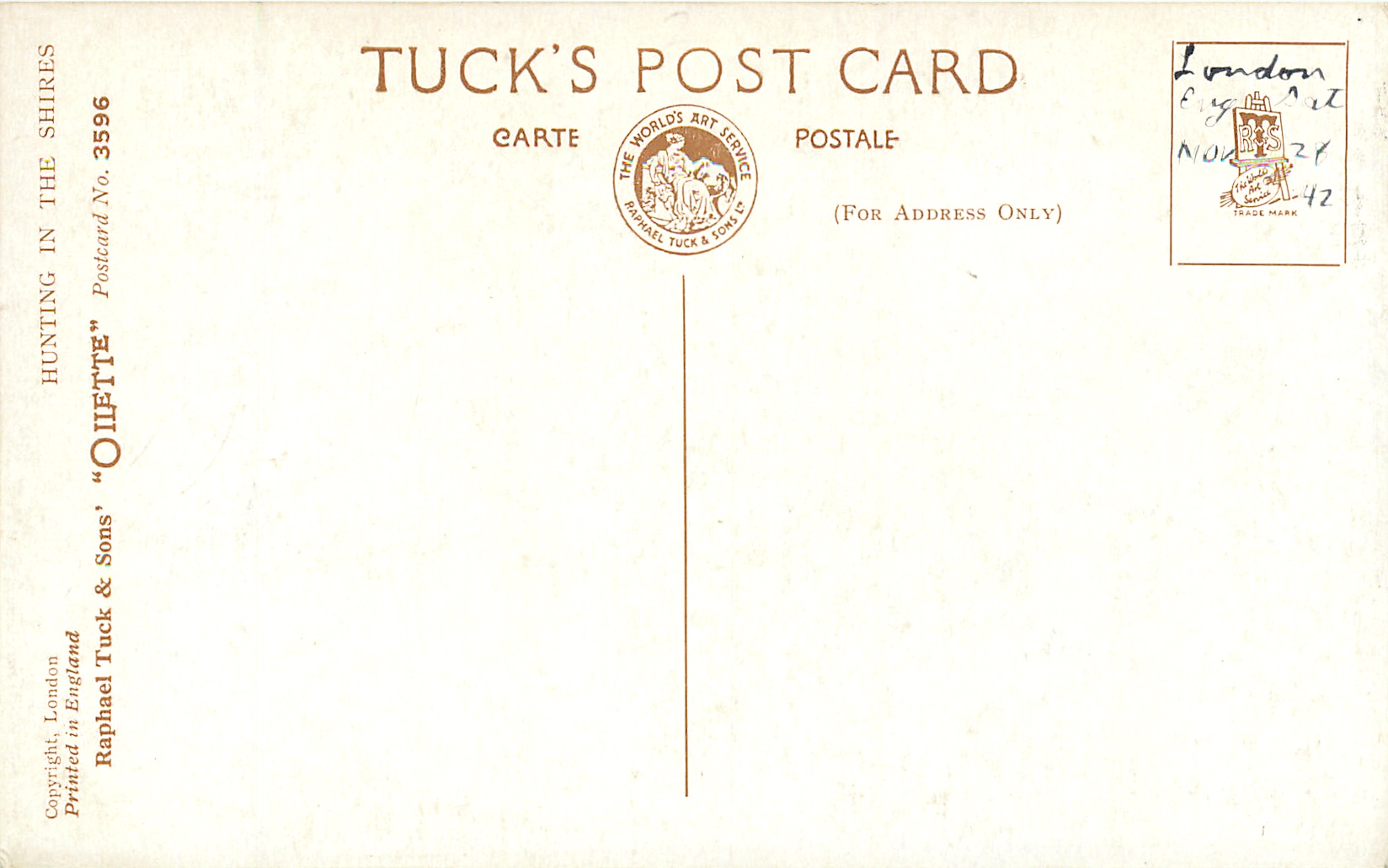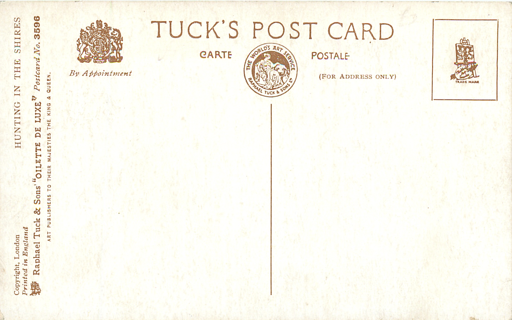 OILETTE, PRINTED IN ENGLAND, COPYRIGHT LONDON, comes OILETTE DE LUXE, comes OILFACSIM w/o prefix, 4 backs, , listed in 1930 Postcard Catalogue & 1932 ART SERVICE Catalogue