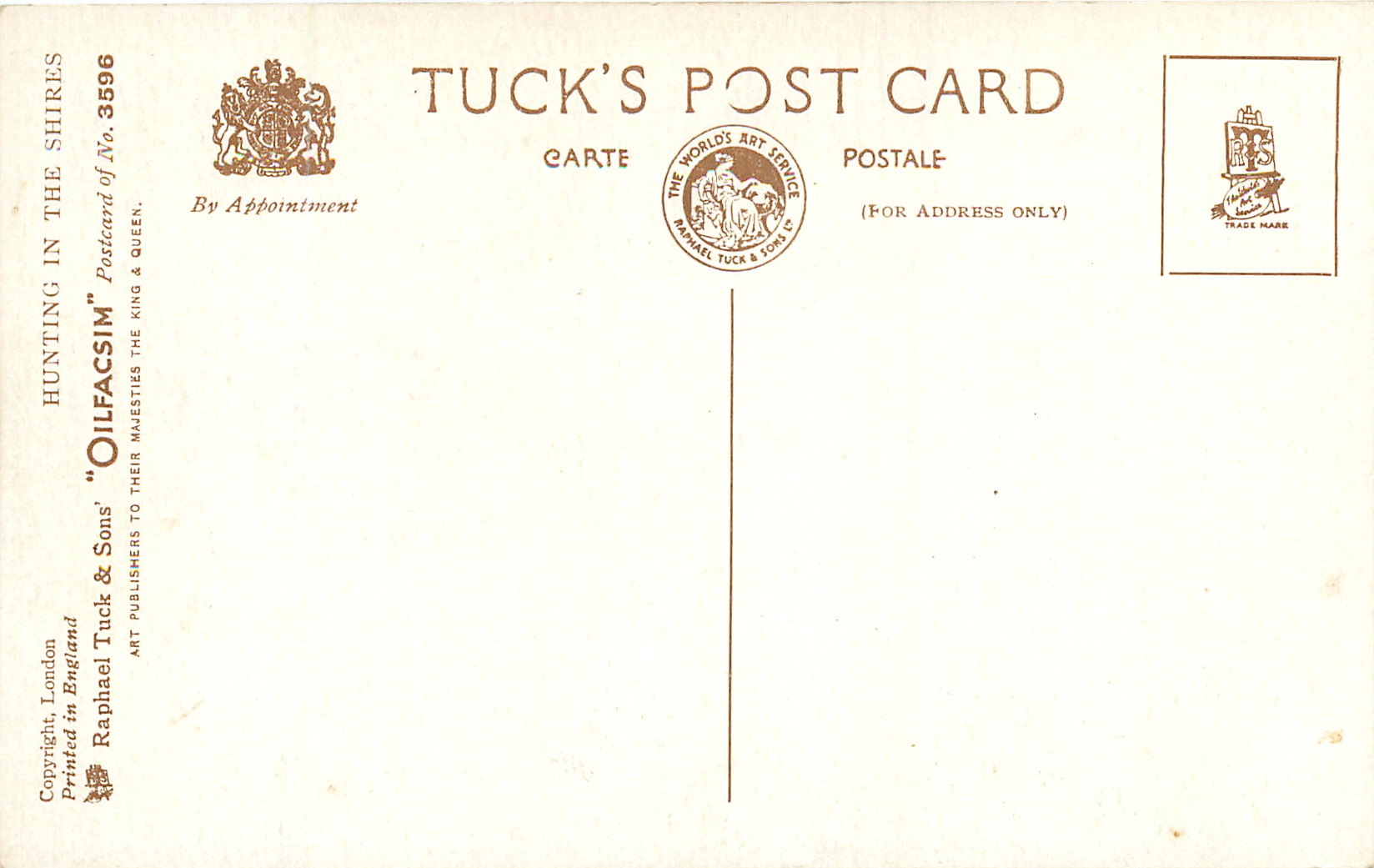 OILETTE, PRINTED IN ENGLAND, COPYRIGHT LONDON, comes OILETTE DE LUXE, comes OILFACSIM w/o prefix, 4 backs, , listed in 1930 Postcard Catalogue & 1932 ART SERVICE Catalogue