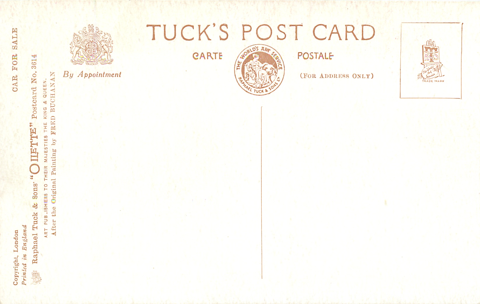 OILETTE, PRINTED IN ENGLAND, COPYRIGHT LONDON, AFTER THE ORIGINAL PAINTING BY FRED BUCHANAN, listed in 1930 Postcard Catalogue 1932 ART SERVICE Catalogue
