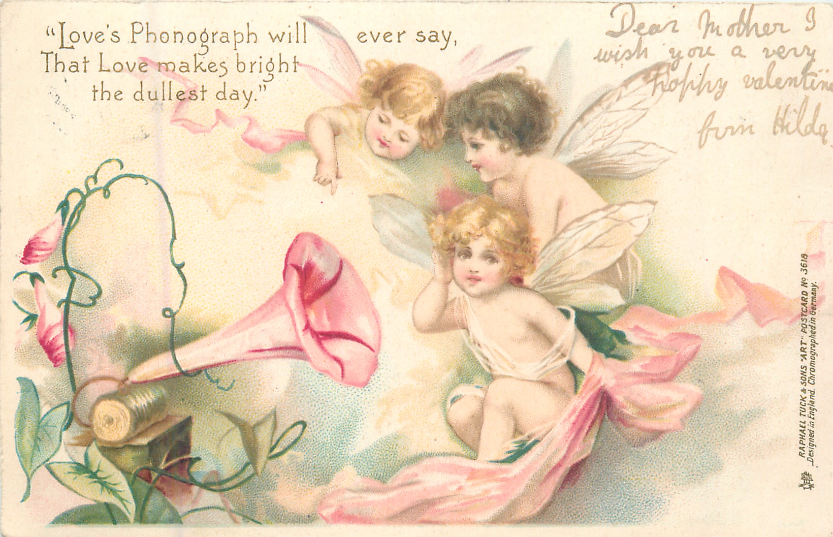 "LOVE'S PHONOGRAPH WILL EVER SAY, THAT LOVE MAKES BRIGHT, THE DULLEST DAY" phonograph