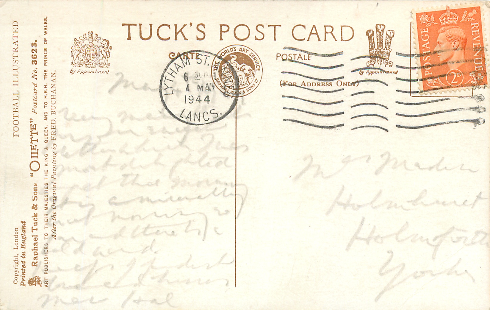 OILETTE, PRINTED IN ENGLAND, COPYRIGHT LONDON, AFTER THE ORIGINAL PAINTING BY FRED. BUCHANAN, listed in 1930 POSTCARD Catalogue