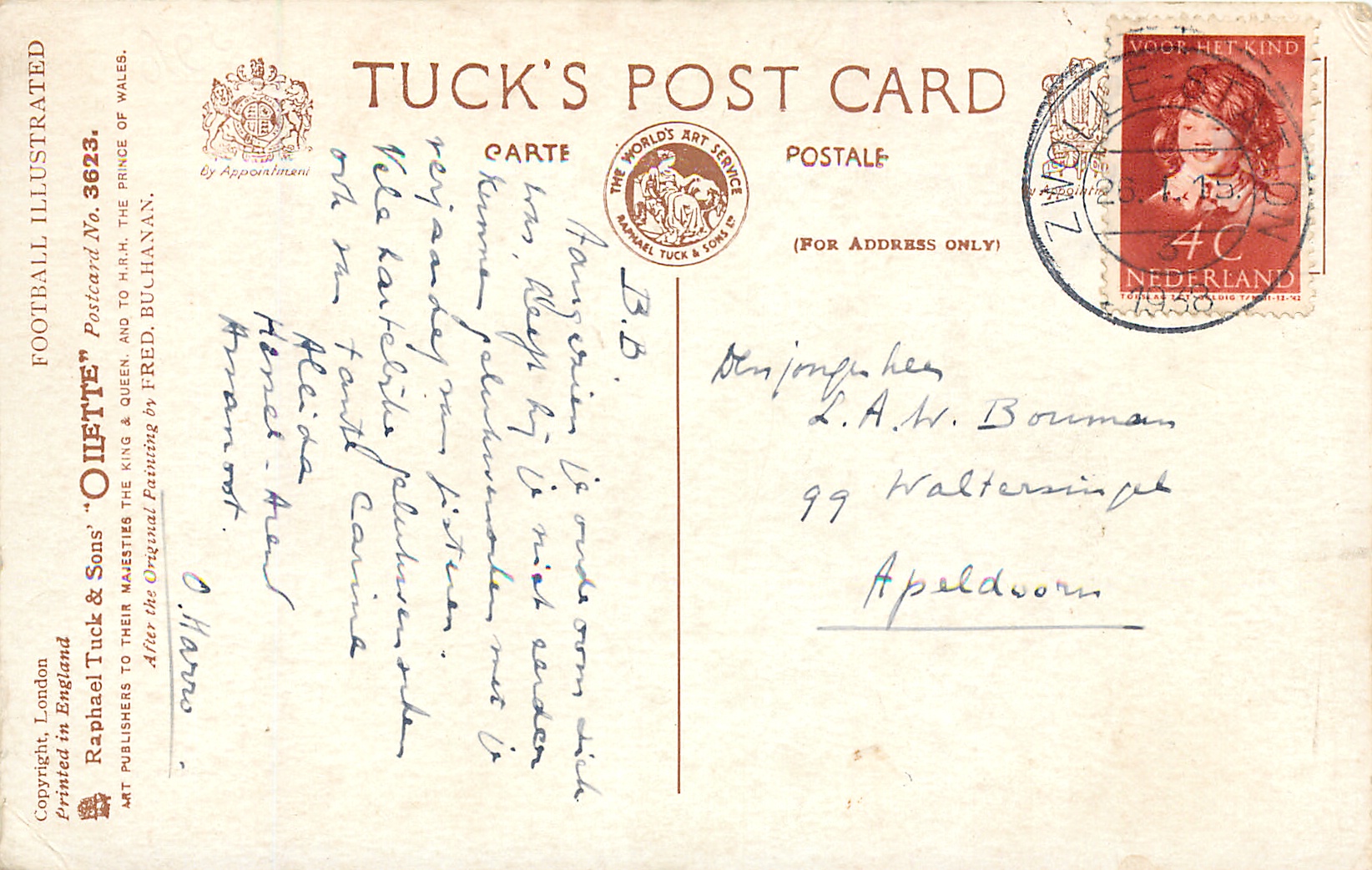 OILETTE, PRINTED IN ENGLAND, COPYRIGHT LONDON, AFTER THE ORIGINAL PAINTING BY FRED. BUCHANAN, listed in 1930 POSTCARD Catalogue