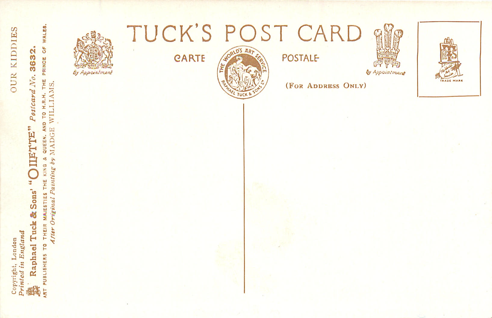 OILETTE, PRINTED IN ENGLAND, COPYRIGHT LONDON, AFTER ORIGINAL PAINTING BY MADGE WILLIAMS, listed in 1930 POSTCARD Catalogue
