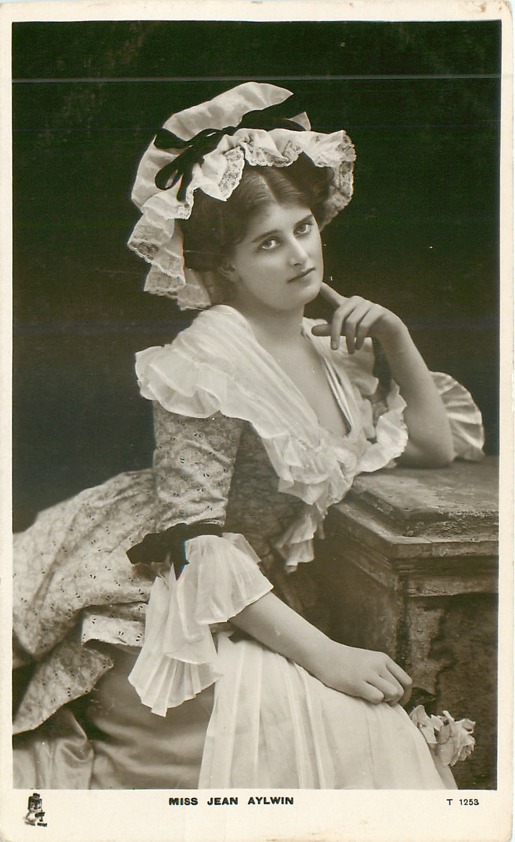 MISS JEAN AYLWIN sitting leaning on table, finger to cheek