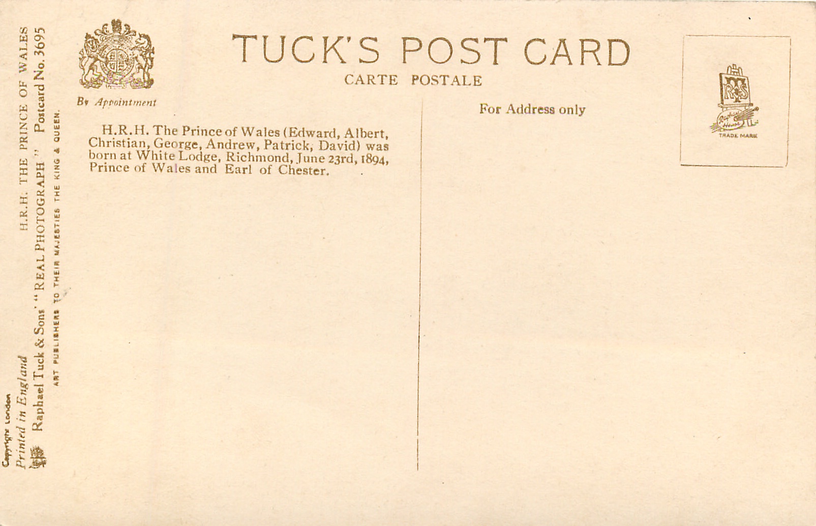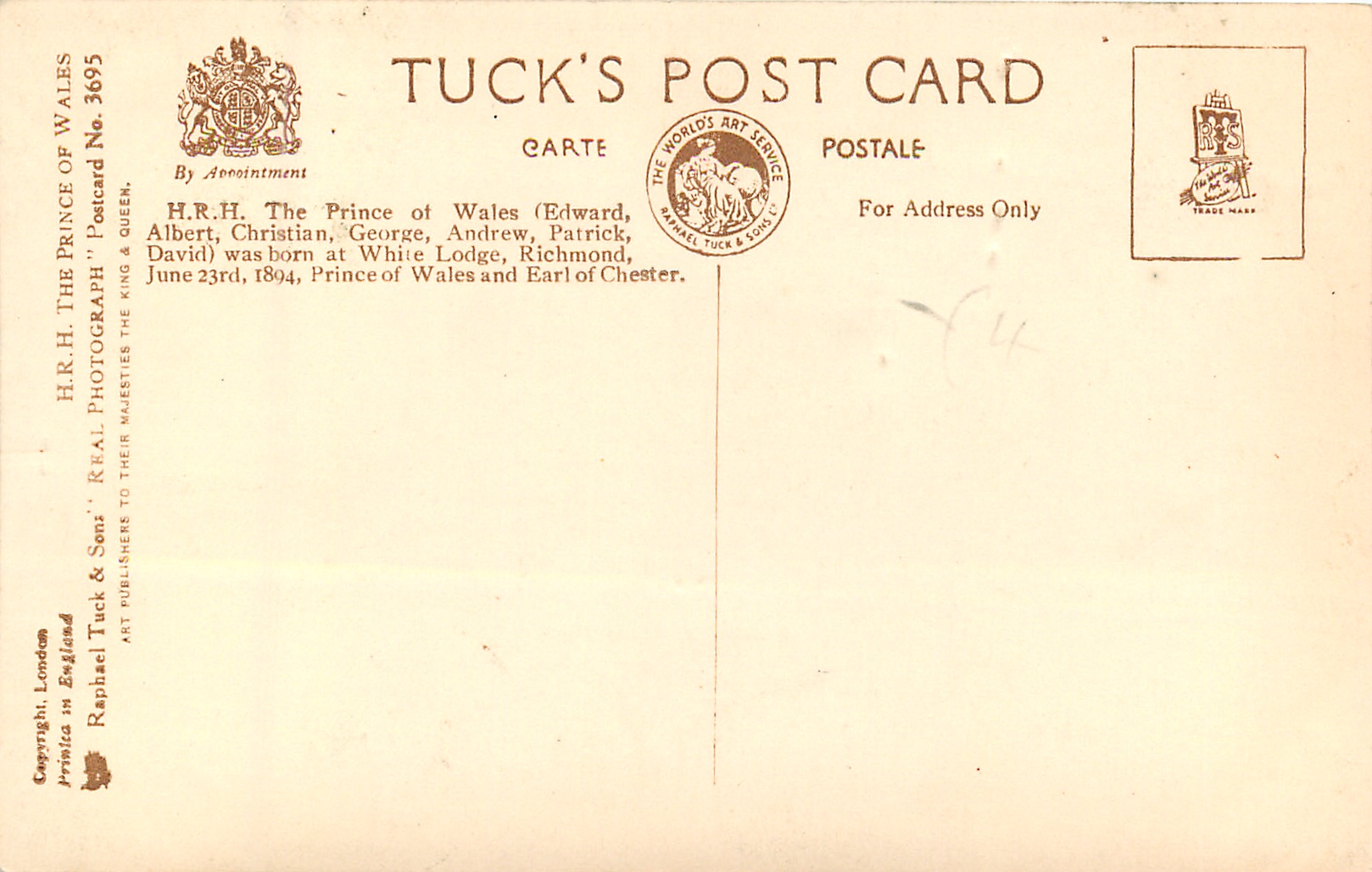 REAL PHOTOGRAPH, PRINTED IN ENGLAND, COPYRIGHT LONDON, listed in 1930 POSTCARD Catalogue, 4 backs