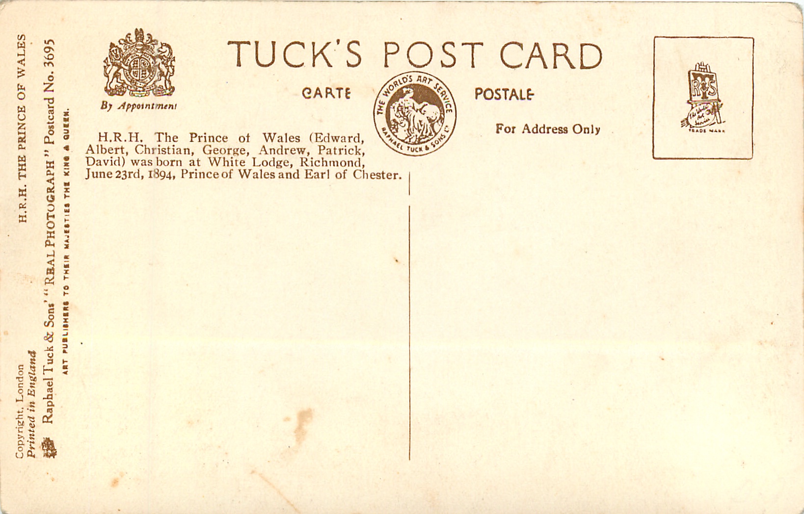 REAL PHOTOGRAPH, PRINTED IN ENGLAND, COPYRIGHT LONDON, listed in 1930 POSTCARD Catalogue, 4 backs