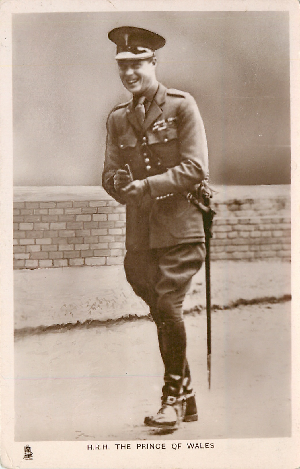 H.R.H. THE PRINCE OF WALES in uniform walking forward left
