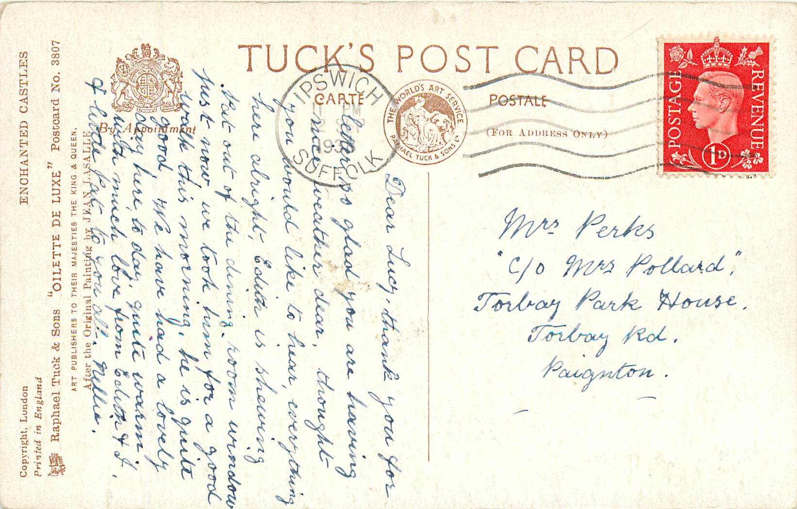 OILETTE DE LUXE, PRINTED IN ENGLAND, COPYRIGHT LONDON, comes OILFACSIM with O.F. prefix, listed in 1930 POSTCARD catalogue & 1932 ART SERVICE Catalogue
