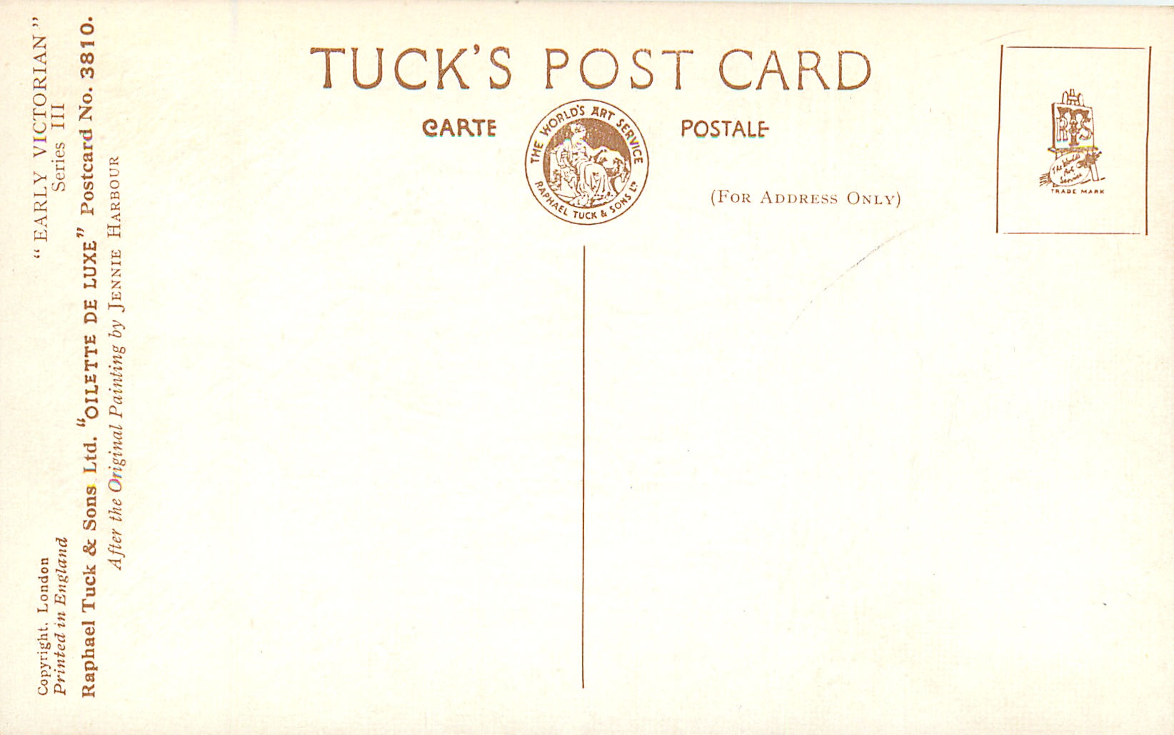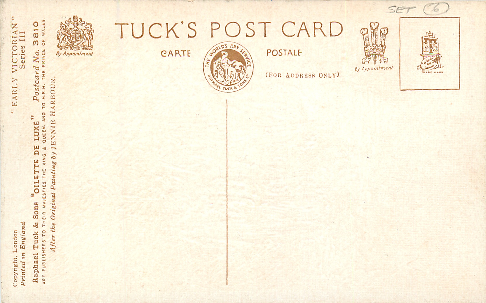 OILETTE DE LUXE, PRINTED IN ENGLAND, COPYRIGHT LONDON, seen with individual numbered cards, comes oilfacsim but not so trade named, 3 backs, AFTER THE ORIGINAL PAINTING BY JENNIE HARBOUR.
