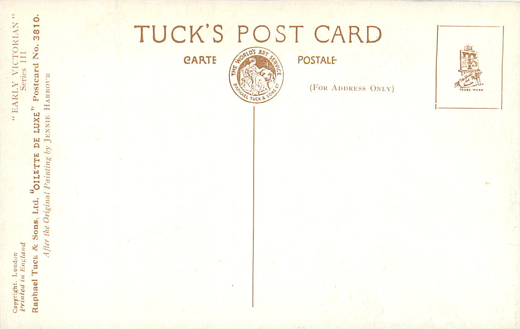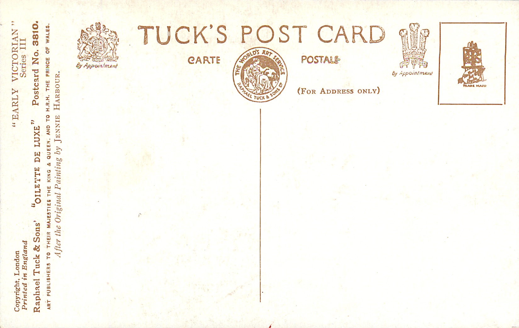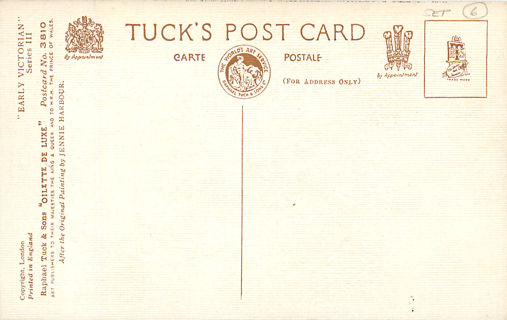 OILETTE DE LUXE, PRINTED IN ENGLAND, COPYRIGHT LONDON, seen with individual numbered cards, comes oilfacsim but not so trade named, 3 backs, AFTER THE ORIGINAL PAINTING BY JENNIE HARBOUR.