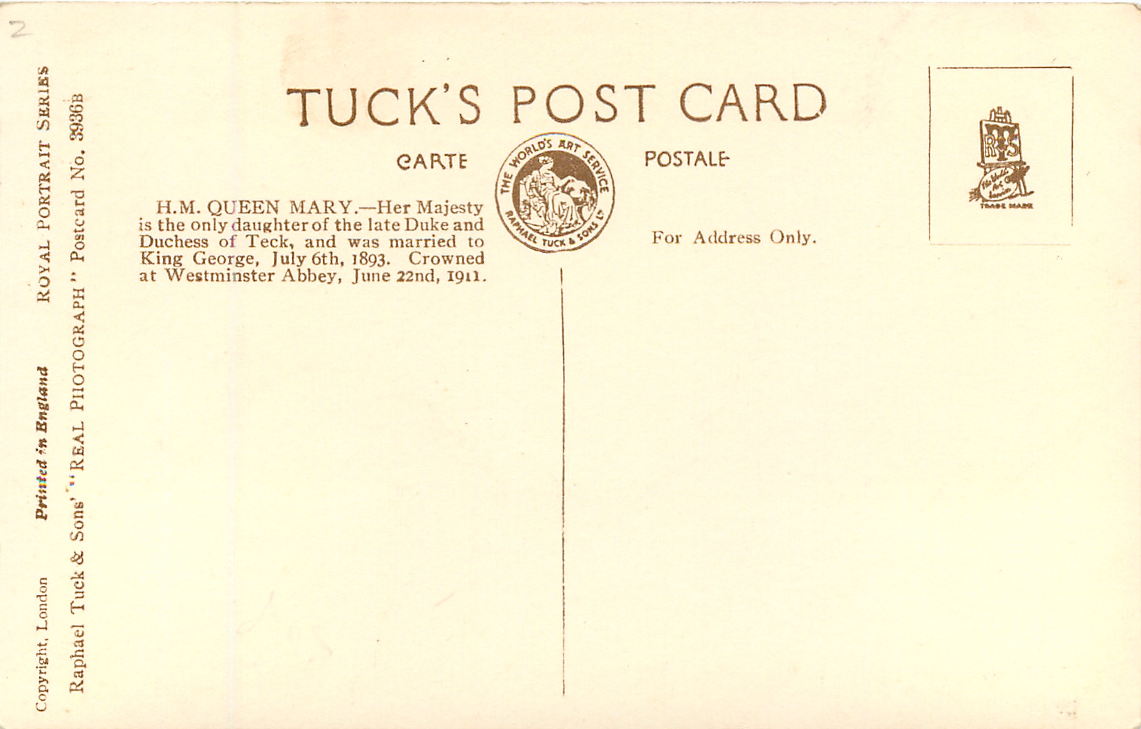 HER MAJESTY QUEEN MARY seated, facing & looking slightly right